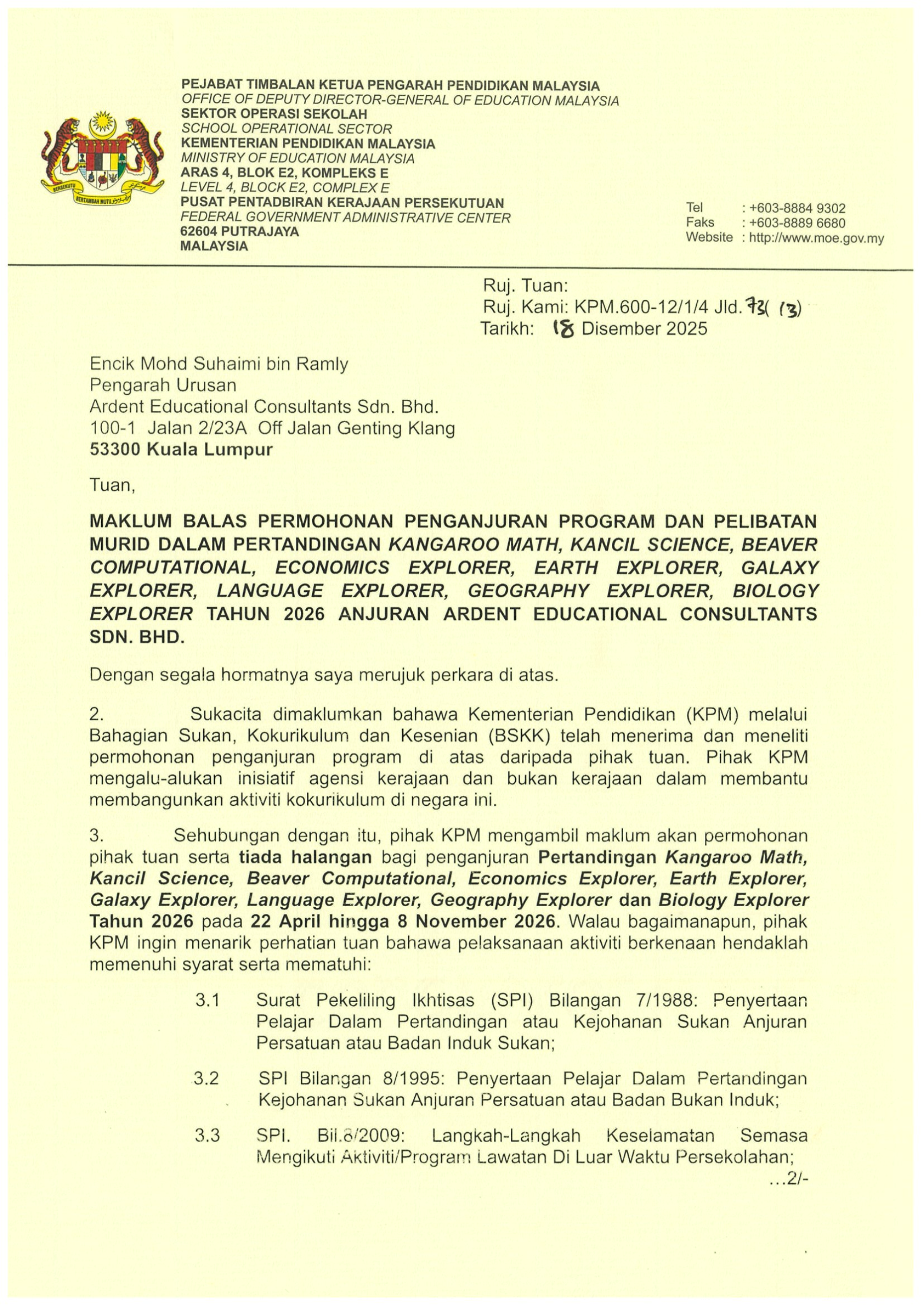 🆕 Surat Maklum Balas Penganjuran Pertandingan 2026
